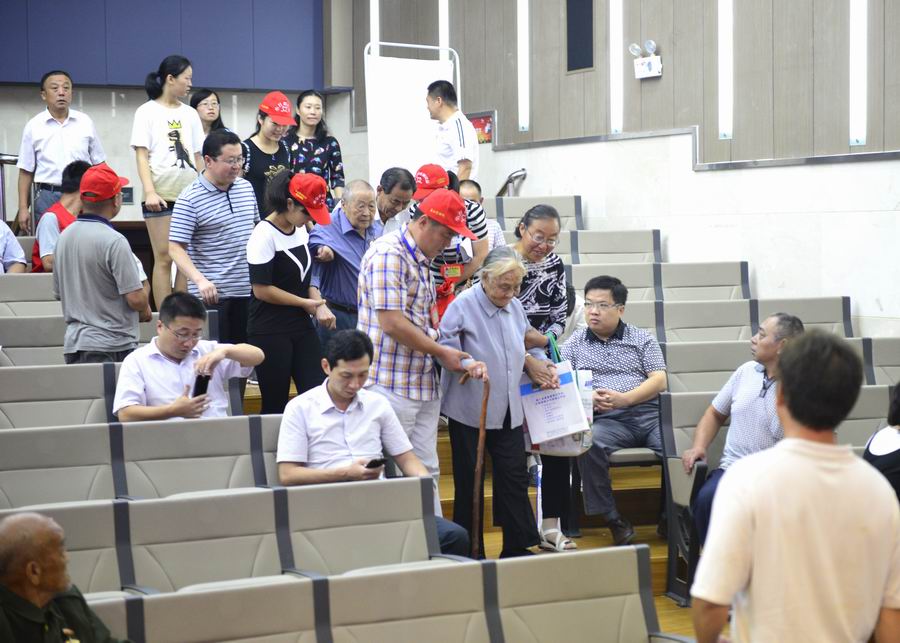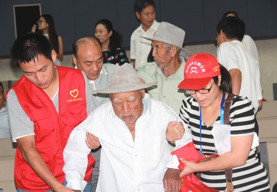 志愿者攙扶抗戰(zhàn)老兵進入會場