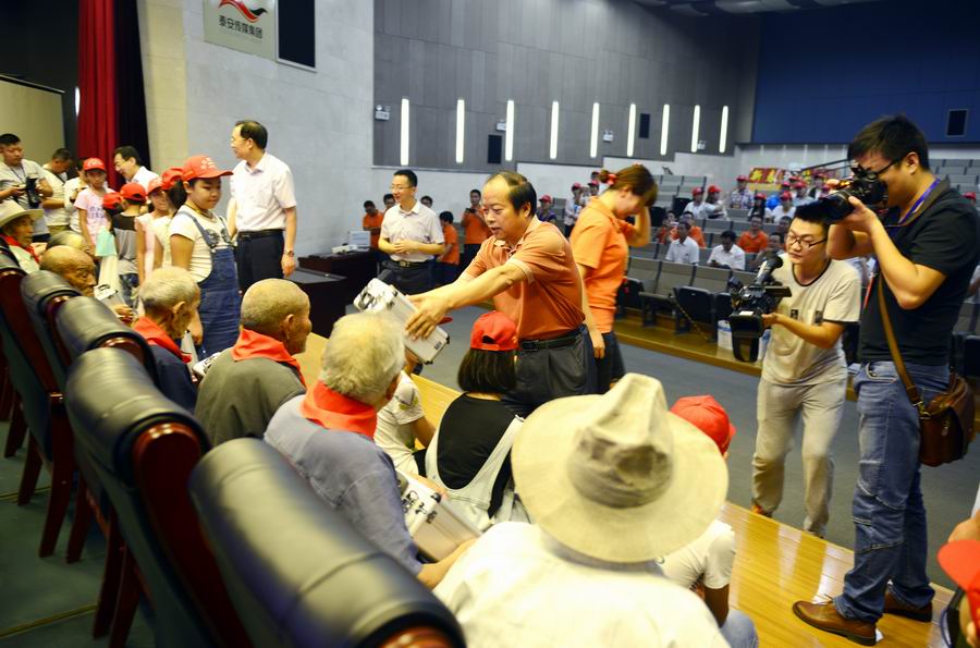 泰安邁迪公司董事長范世忠為抗戰(zhàn)老兵發(fā)放健康監(jiān)護儀